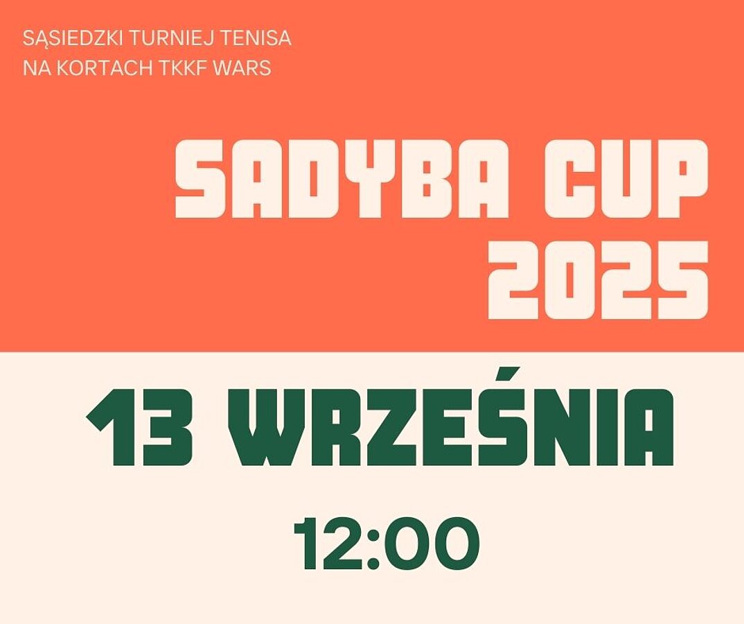 Jesteście miłośnikami tenisa i mieszkacie na Sadybie? To świetnie się składa! Już 13 września o godzinie 12:00 na kortach @Klub Wars odbędzie się nasz deblowy turniej tenisowy, Sadyba Cup 2025.